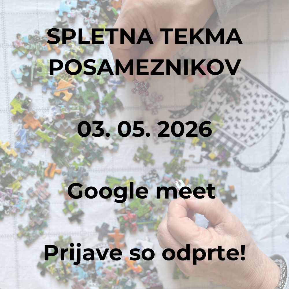 Vabljeni na 9. spletno tekmo v hitrostnem sestavljanju sestavljank, ki bo potekala preko Google meet povezave. Za tekmo potrebujete stabilno internetno povezavo, kamero usmerjeno v površino, kjer boste sestavljali, sestavljanko pa vam mi pošljemo na izbran naslov in jo lahko po tekmi tudi obdržite.